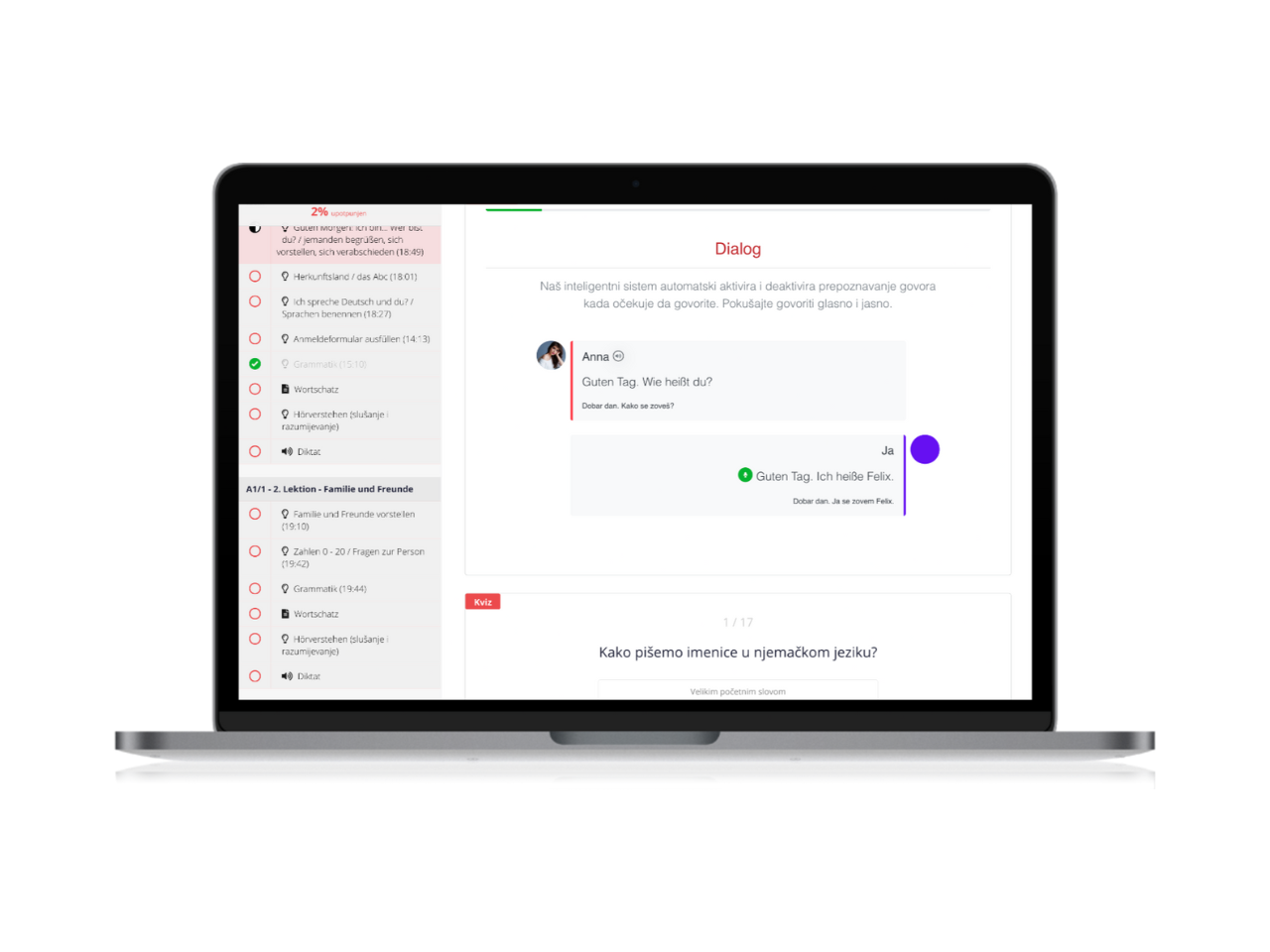 Zahvaljujući našoj inovativnoj metodi prepoznavanja govora možete kroz interaktivni vokabular i dijaloge uvježbati kako voditi bitne razgovore.